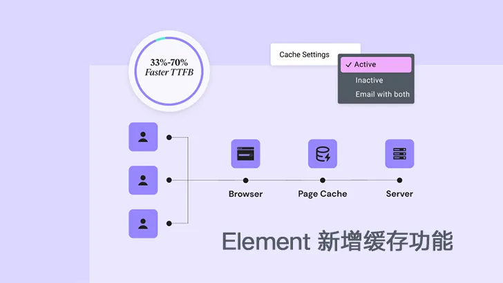 Elementor 3.22 引入了全新的缓存功能,专门针对 Elementor 和 Elementor Pro 组件。内部性能测试显示,启用新缓存功能后,网站的内存使用量从3MB显著降低至8KB,首次字节时间(TTFB)指标改善了33%至70%。